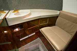 Nine-passenger Executive Interior with four seats aft in club configuration, two forward seats, and RH forward two place couch. Aft belted lavatory seat. Large forward closet and aft closet. All wood veneer. Seats completed in tan leather.