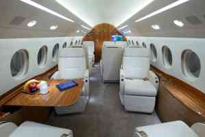 10 passenger configuration with double club, four place conference group and an aft club with an offset aisle lavatory door