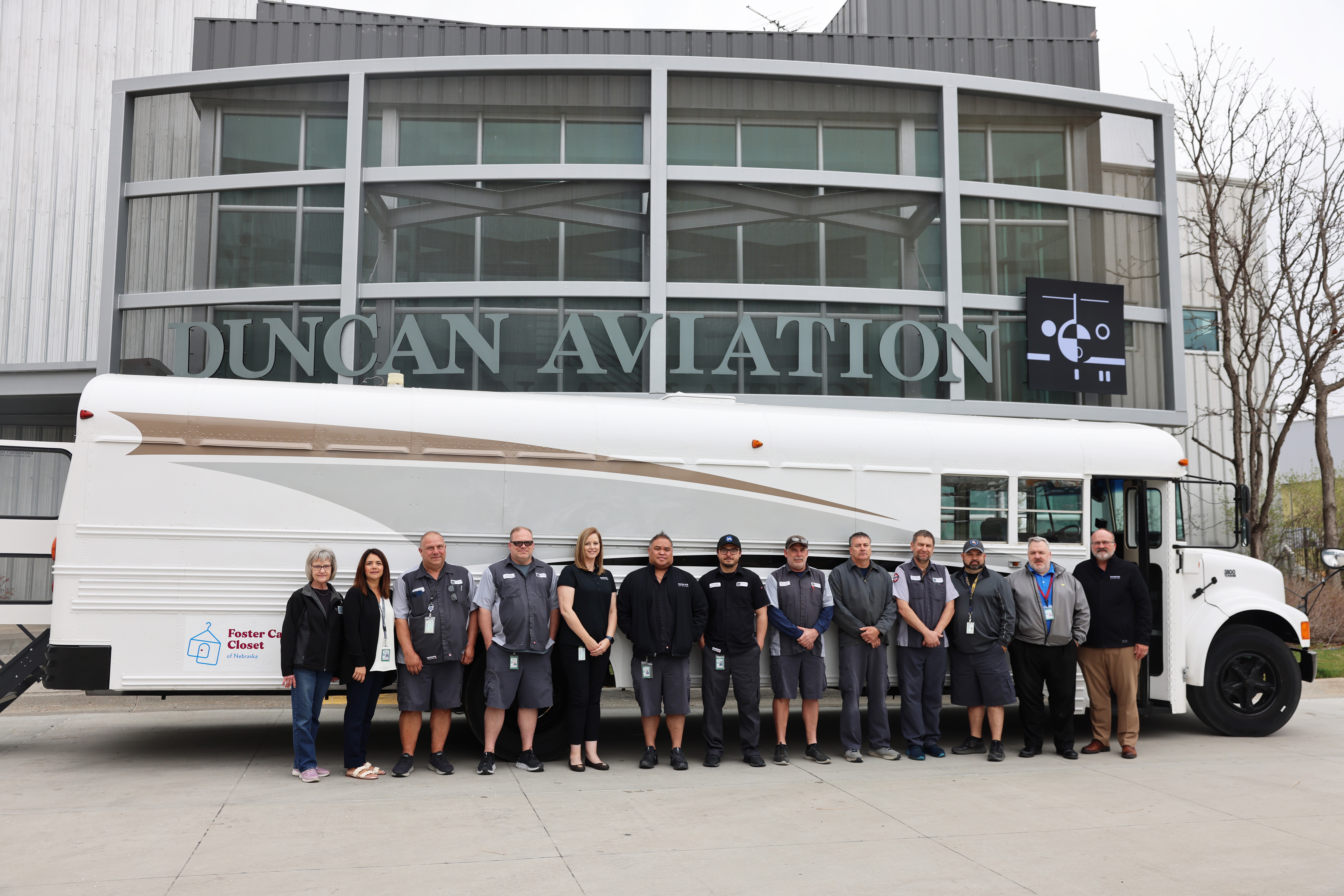 “Our project was in the works for more than four years, and now the Foster Care Closet bus can start serving the children and teens in foster care in Nebraska,” says Sales Rep for Government Programs Tracy Bohaboj. “We couldn’t have done this without the generous help and support of the dozens of Duncan Aviation team members who helped in countless ways.”