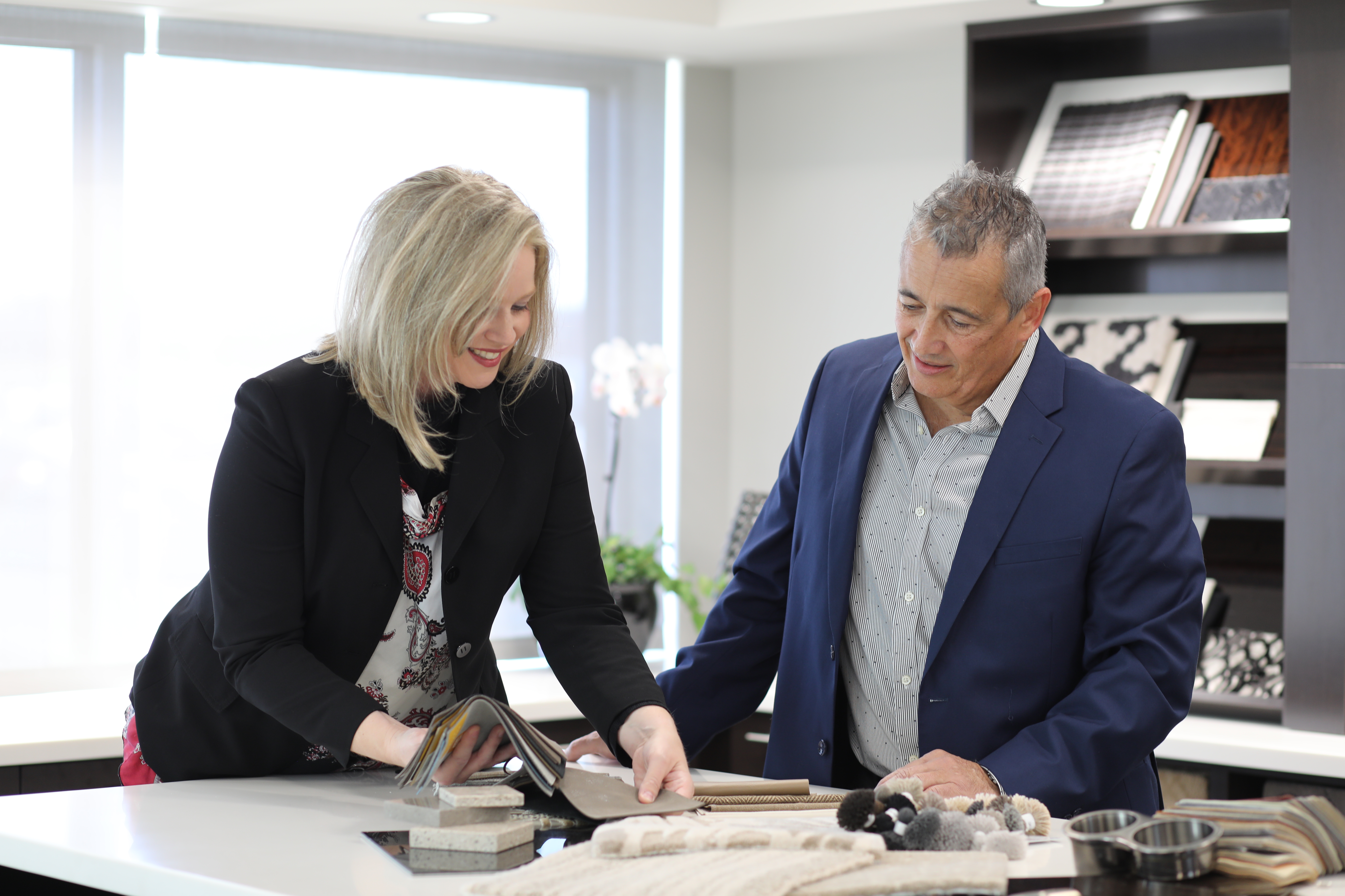The Design Center renovation put major importance on lighting. Large picture windows and skylights are prominent throughout. “We wanted to emphasize the ideal lighting conditions,” says Senior Designer Mary Lee. “The type of lighting is vital when selecting materials. Simulating the combination of natural daylight and LED lighting that is in an aircraft within the showroom allows customers to view materials in the perfect setting.”