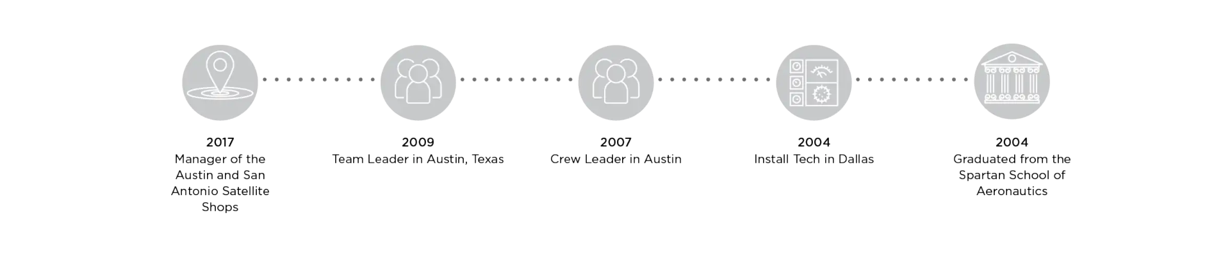 “In 2016, the decision was made to separate the Austin and San Antonio workaway stations from the Dallas Satellite Shop. Austin would get its own certificate, and San Antonio would be a workaway location from Austin,” says Reggie. “I was promoted to manager of both Austin and San Antonio.”