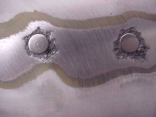 ![]() Lower ramps skin corrosion on a reverser bucket. |