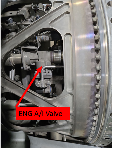After the above troubleshooting steps failed to correct the issue, technicians’ attention moved to the internal A/I valve. They gained access to and replaced the internal RH ENG A/I valve. This corrected the issue.