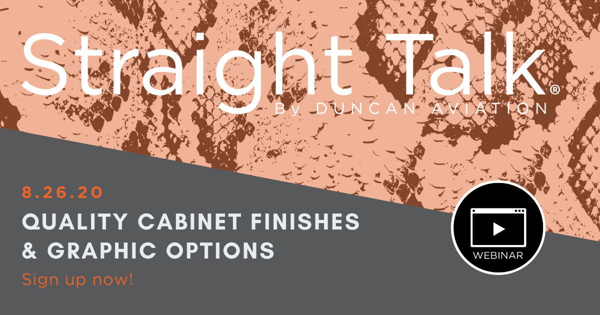 LINCOLN, NEB — Duncan Aviation is excited to announce its August webinar topic: Quality Cabinet Finishes & Graphic Options.