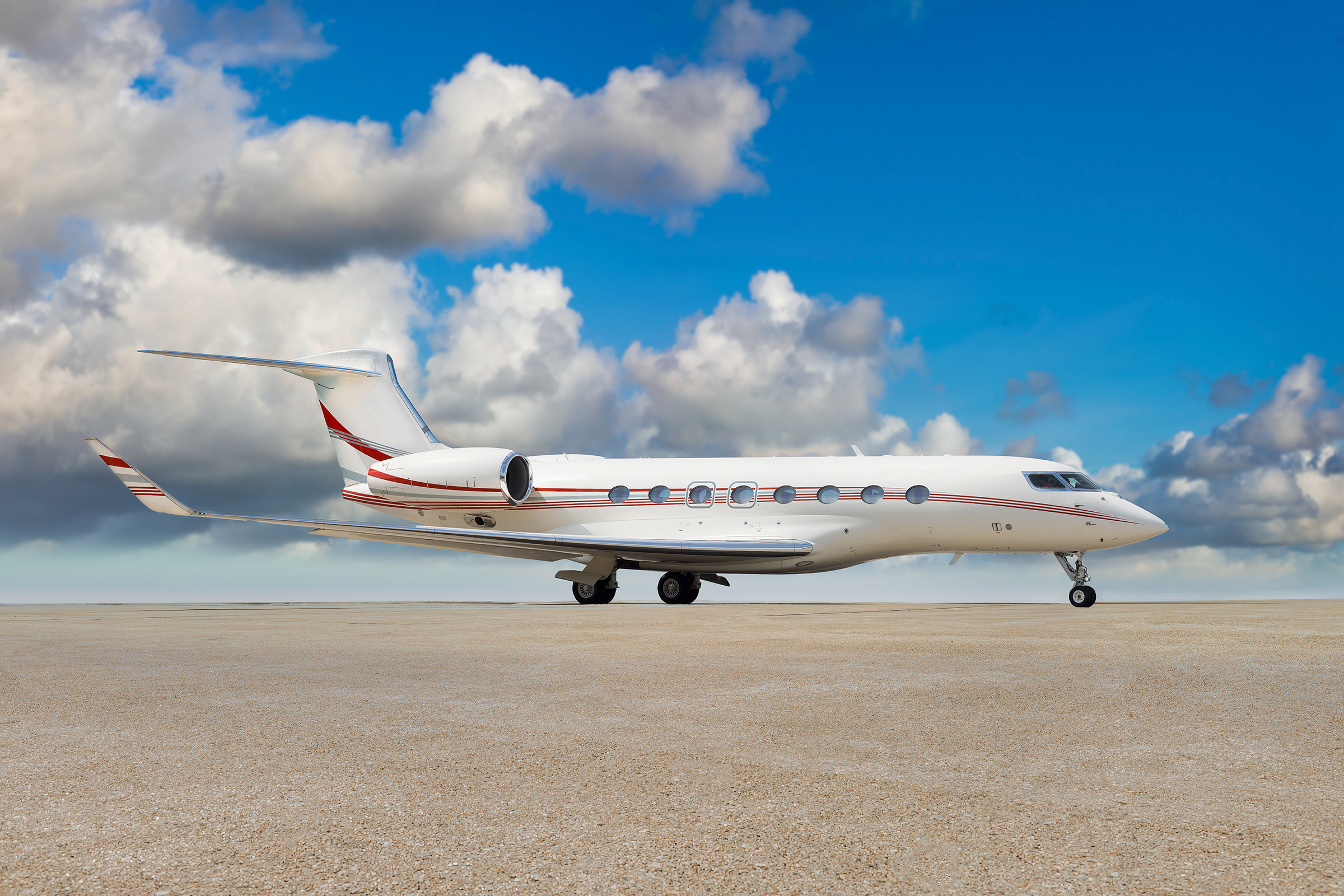 The new, custom paint scheme on the aircraft mimics the previous scheme the customer had on their G550, and is highlighted by an off-white base and more complex stripes compared to the typical paint on a Gulfstream.